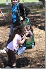 Whenever she is feeling up to it, this is where she wants to be – outside swinging!